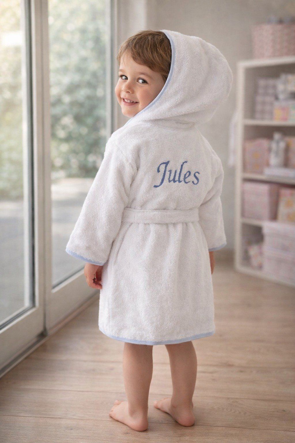 Peignoir bain pour bébé ou enfant personnalisé fera un magnifique cadeau de naissance.